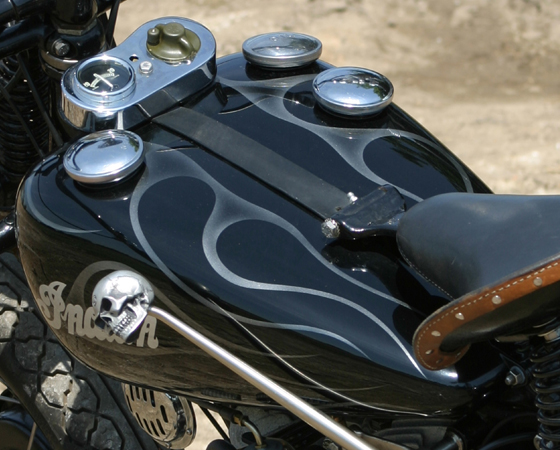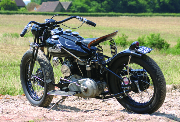 Originally a WWII military vehicle, this bike had been modified post war into the ‘bobber’ style typical of the day. Bikes could be bought very cheaply after the war and people removed the heavy original parts to create a lighter faster machine. This bike has a 600cc V-twin engine and a 3 speed gearbox.